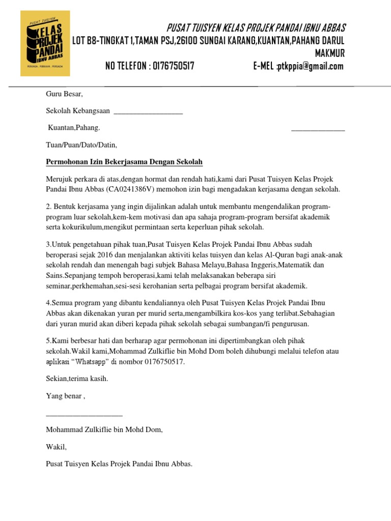 Surat Pelepasan Tuisyen Pusat Tuisyen Cendekia Sandakan Pdf